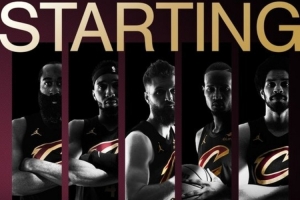 骑士先发为:哈登、米切尔、迪恩·韦德、莫布里、阿伦。